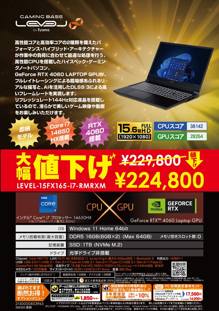 ゲーミングPC・デスクトップPC・ノートPC 「即納モデル」大幅値下げ!