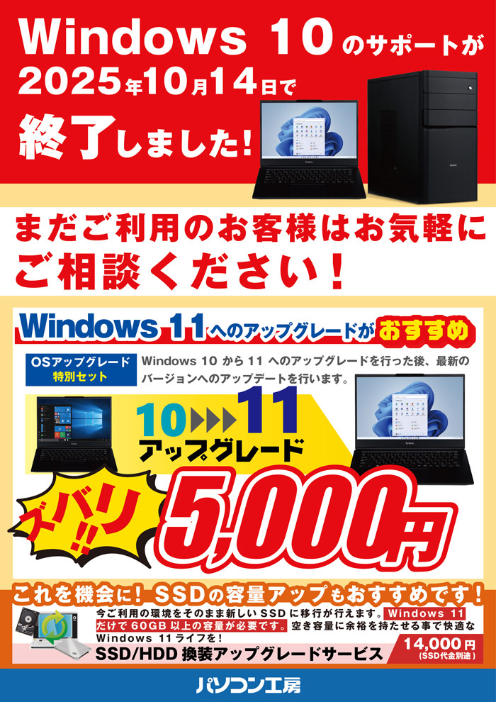 鳥取県鳥取市のパソコンに関するご相談なら、パソコン工房 鳥取安長店へお任せ下さい!
