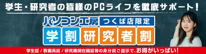 パソコン工房 つくば店は茨城県つくば市に位置し、地域密着でサービスをご提供させて頂きます。「パソコン工房」は北海道から沖縄まで日本全国で展開する国内最大級のパソコン専門ショップで、最新パソコン、パソコンパーツの販売・ゲーミングPC買取・iPhone買取からパソコン設定、設置・出張サポートだけでなくメーカーパソコンのアップグレード・故障・修理にも安心価格で迅速対応!全国150名以上のMCP(マイクロソフト認定技術資格)取得スタッフを中心とした高品質のサービス対応であなたのパソコンライフを徹底サポート!”街のITステーション”を目指してお客様にご利用頂いております。パソコンの事なら私たちパソコン工房 つくば店へお任せください!